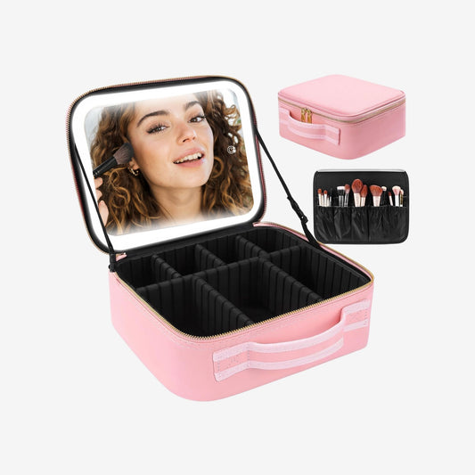 Estuche Cosmético Portátil con Divisores Ajustables y Luz Led 3 Colores