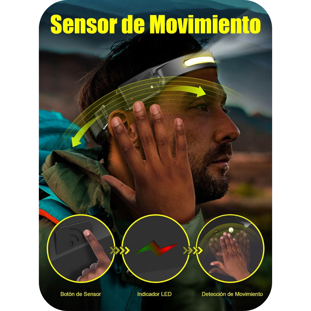 Este faro LED de alta tecnología cuenta con una cómoda diadema ajustable, sensor de movimiento para encender o apagar con un simple gesto y hasta 350 lúmenes de potencia. Olvídate de linternas incómodas y lleva la luz siempre contigo.
